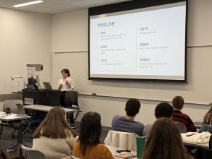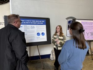Across the two sessions eight students displayed their posters from 2:30-4:00pm. Highlights included findings on family dinners and their role in storytelling, analyzing reddit threads discussing postpartum experiences, Appalachian healing practices, Ukrainian activism in Indianapolis, and much more.