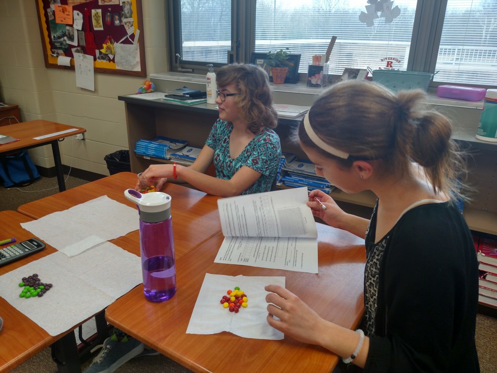 Students working on an Exponential Growth and Decay Discovery activity using Skittles.
