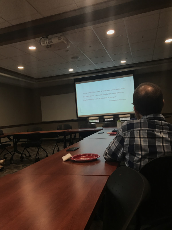 I also really liked a quote that he had on the back of his presentation, “Every morning when I wake up I dedicate myself to helping others find peace of mind. Then, when I meet people, I think of them as long-term friends: I don’t regard others as strangers.”