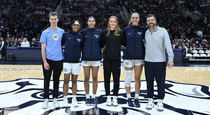 Guards Ari Wiggins, Kilyn McGuff, Caroline Strande and Sydney Jaynes were honored on Senior Day. Photo courtesy of Butler Athletics.