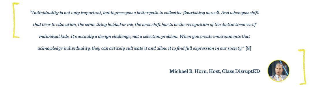 A more socially-sophisticated and prepared populace places new demands on leaders as well, to be thoughtful stewards of their organizations’ missions and the needs of their teams. As the worlds’ economies and societies needs continue to evolve, the pressure will build on our leaders to provide the sort of direction that provides for the common benefits that our founding fathers thought possible. With the recent renaissance of the whole child, Class DisruptED host Michael B. Horn suggests that considering individuality to paves a clear path to reinforcing the collective.
