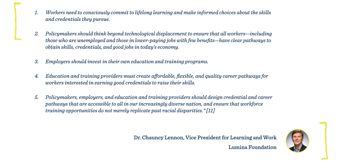 - Lennon, C. (2020, February 24). The future of work is already here. Policymakers need to get onboard. Lumina Foundation. https://www.luminafoundation.org/news-and-views/the-future-of-work-is-already-here-presidential-candidates-policymakers-and-employers-need-to-get-on-board/”