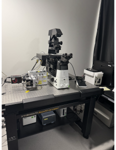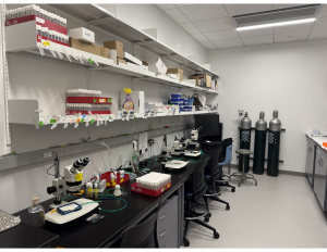 The Lewellyn Lab is located in the recently renovated Gallahue Hall. Students spend most of their time in the fly room (left) doing dissections or setting up crosses or in the microscopy suite capturing images of living or fixed tissue on the Nikon spinning disk confocal microscope (right).