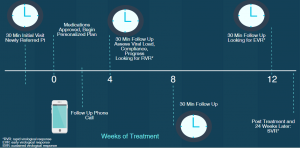 - We will visit with patients initially and at least every four weeks. Frequency may differ depending on personalized medication regimen chosen (0,4,8,12 week visits)
