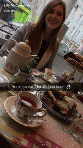 I’m not going to lie to you, when I realized that I was going to be abroad for my 21st birthday, I was a little sad. In Ireland the drinking age is 18, so turning 21 in Ireland literally means nothing in Europe. However, by some sort of sheer luck, Lily, my roommate turned 21 on the 11th and my birthday was on the 12th. So of course we decided to turn the weekend into a full on birthday bash. We started out on Friday, the 10th, with a afternoon tea. It makes sense to have a tea party for your 21st birthday right??  We went to Tara’s Tea room, one of our favorite places in Cork and feasted on an assortment of finger sandwiches, scones, pastries, cake, and of course tea! It was fantastic fun.